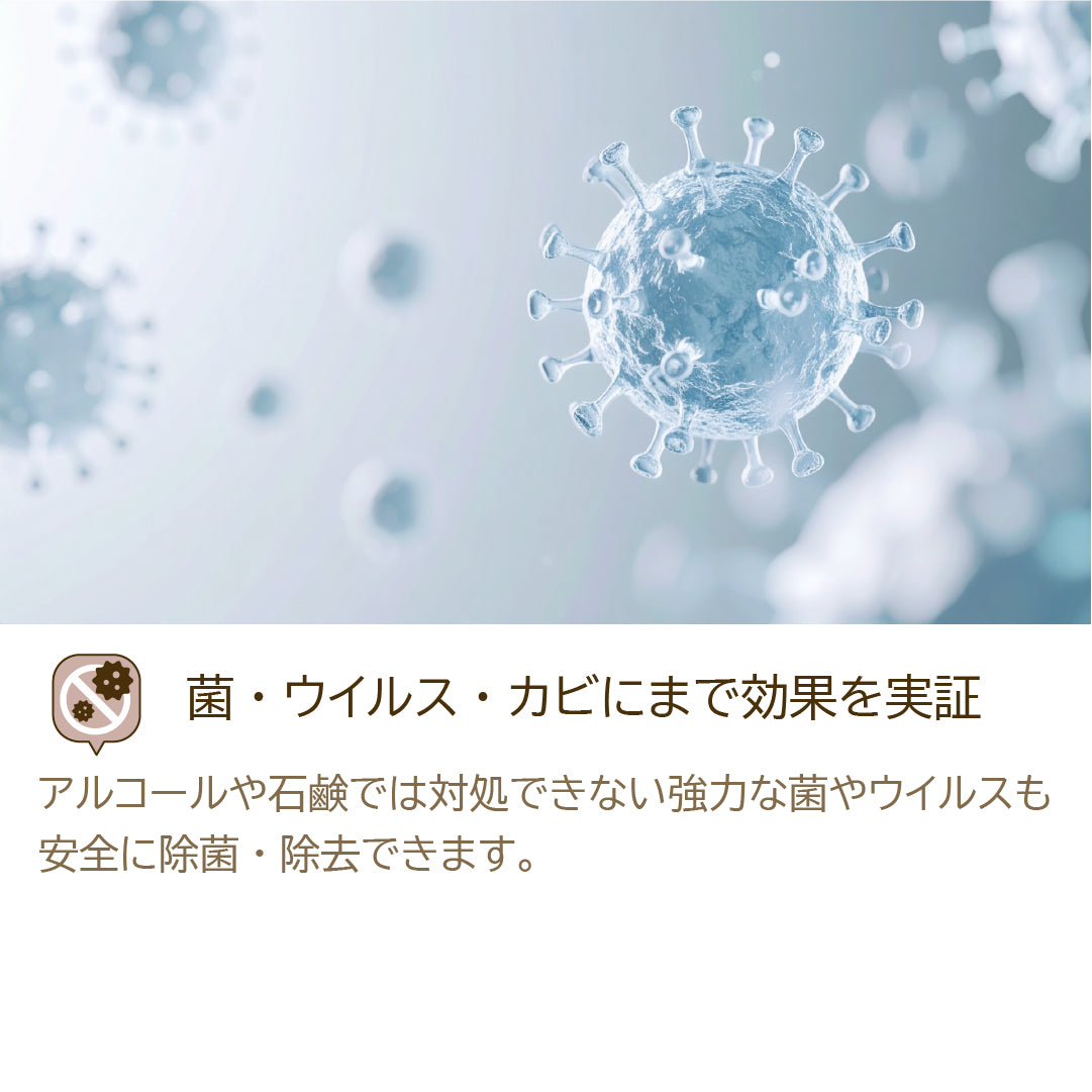 | ●内容量:アクアリブ原液1L(有効遊離塩素濃度:400ppm) ●成分名:次亜塩素酸水溶液(原料:次亜塩素酸ナトリウム NaCLO/塩酸 HCL/水 H2O) ●液性:微酸性 (Ph5.5〜6.6) ■次亜塩素酸ナトリウムに希塩酸と水を特殊技術で混交させて作った微酸性次亜塩素酸水です。人の皮膚や動物の被毛、菌やウイルスなどの有機物に触れると真水に戻るので、赤ちゃんやペットが舐めても安心安全です。 ■次亜塩素酸水は、新型コロナウイルスに対する有効性が経産省(NITE)の検証試験で認められました。 ■アクアリブスプレーは希釈済です。希釈せずそのままお使いください。 ◆◆◆注意事項◆◆◆ ◆高温・直射日光を避けて冷暗所に保管して下さい。 ◆アクアリブは経時変化により濃度が薄くなります(400ppm 保証有効期限:冷暗所保管で約6ヶ月) ◆他のアルカリ性・酸性の製品とは混ぜないで下さい。 ◆金属が長時間アクアリブに暴露されると腐食する場合があります。アクアリブを吹きかけた場合は長時間放置せずに拭き取り、アクアリブ液中に金属を浸漬させないよう注意して下さい。 ◆ウイルス不活化や除菌目的で使用する場合は、対象物の汚れをあらかじめ取り除いてから使用して下さい。 ◆商品の価格及びデザイン・仕様は、改善のため予告なく変更する場合があります。 |