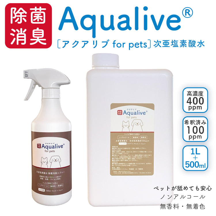 アクアリブ for pets 原液 1リットル+スプレー500ml 猫カビ 真菌 ノンアルコール 手荒れ無し 猫トイレ 消臭スプレー 除菌スプレー