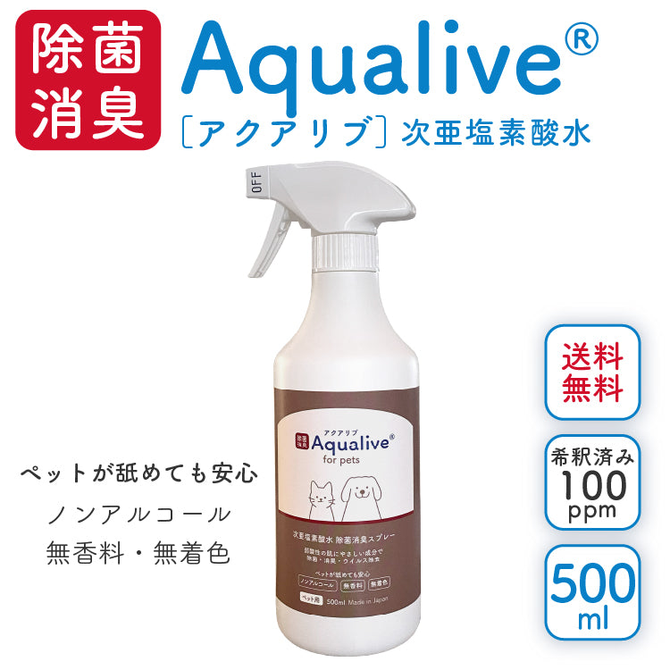 【 送料無料】アクアリブ for Pets 除菌スプレー 500ml(希釈済み/有効遊離塩素濃度:100ppm)【沖縄・離島への配送不可】