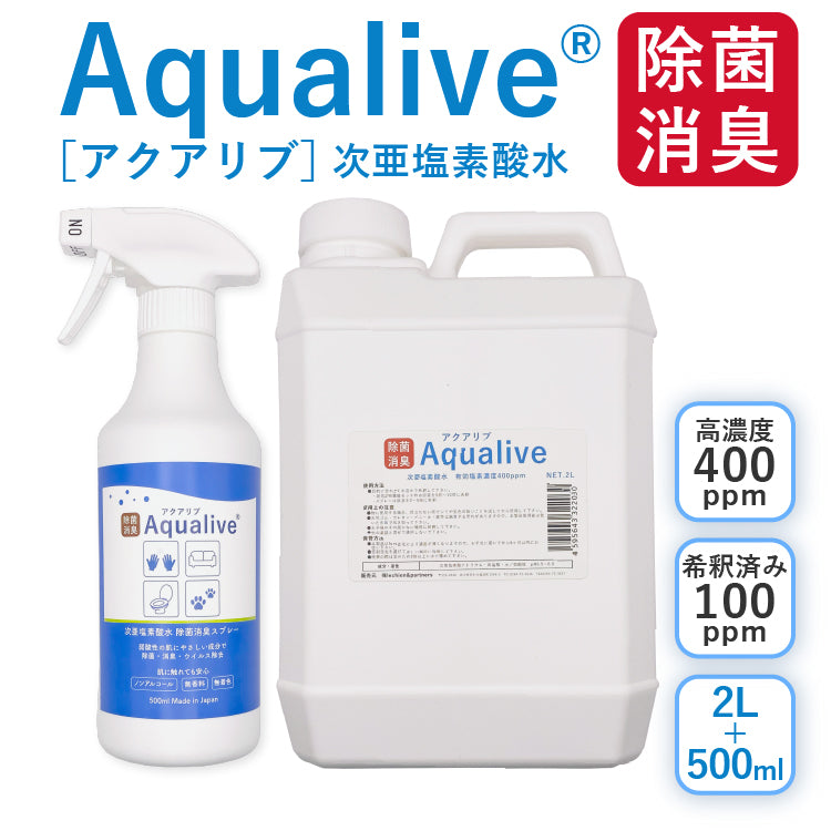 アクアリブ原液2リットル(400ppm) +アクアリブ希釈済み500mlスプレーボトルセット(微酸性次亜塩素酸水 )
