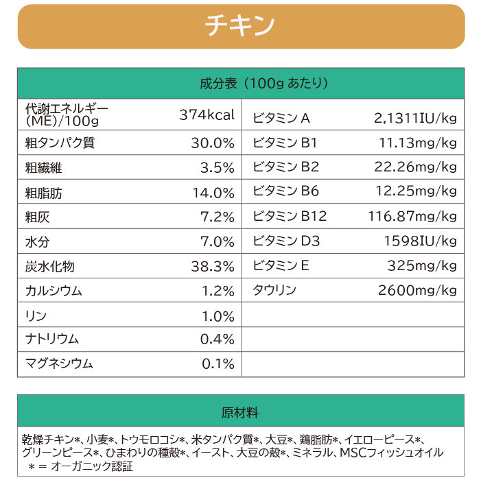 ヤラーキャットフードチキンに使われるオーガニックチキンは、ブロイラーの73倍の広さを占有し、自由に動き回って生活しています。余分な脂肪が少なく健康的なチキンになります。