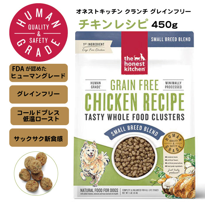 【新商品】オネストキッチン クランチ チキンレシピ450g ヒューマングレード グレインフリーオネストキッチン クランチ チキンレシピ コールドプレス 低温ロースト【賞味期限:2026年7月16日】