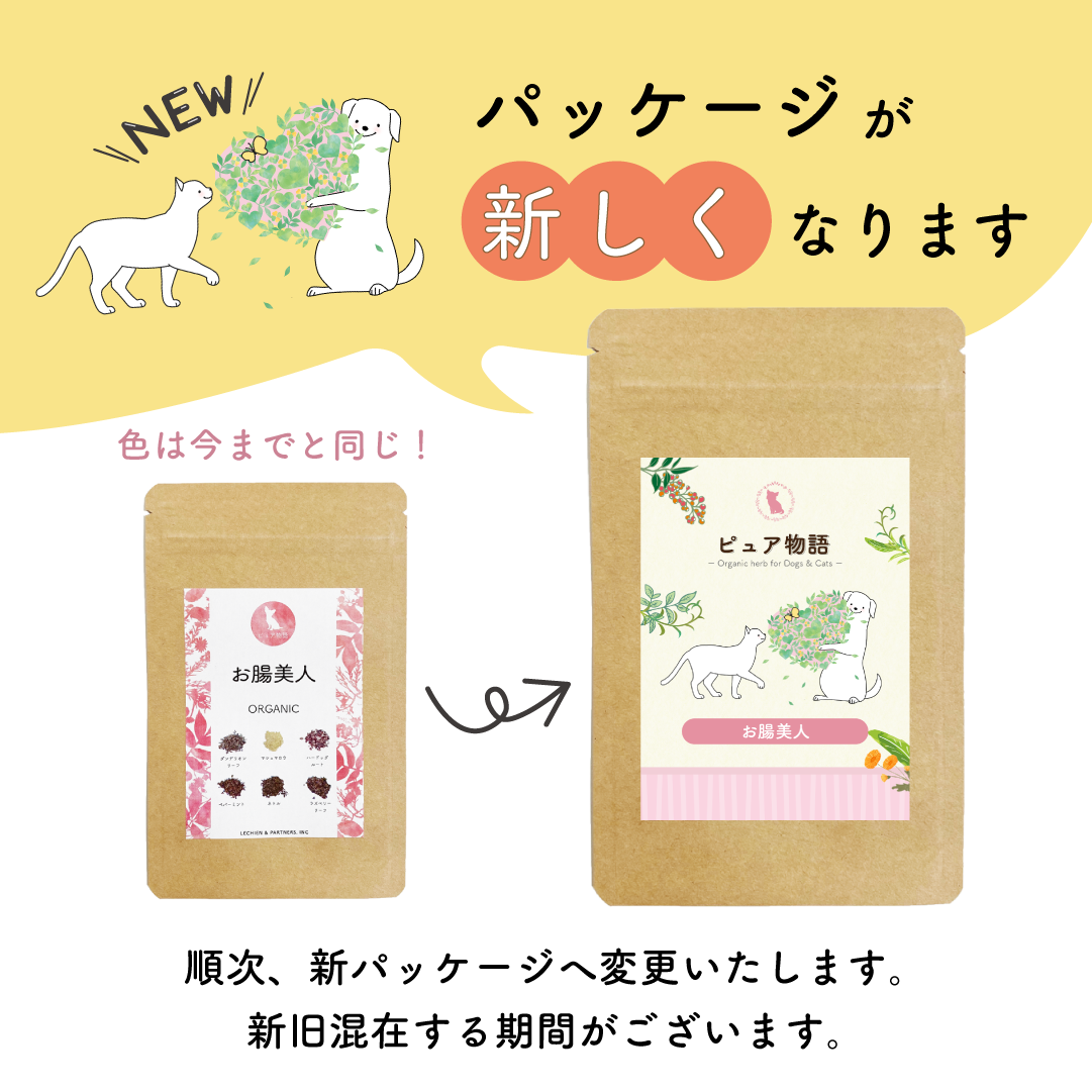 | ブレンドハーブ 【ダンデリオンリーフ】※ ビタミンやミネラルを豊富に含む。特にカリウムと鉄の含有が多い。貧血解消やデトックスのほか、多くの利尿剤と違い体内のカリウムを減らすことなく利尿作用を得ることができる。 【ネトル】※ フラボノイドや葉緑素、ビタミン、ミネラルが豊富に含まれる。貧血予防、増血、血液浄化の目的で使用されるほか、抗炎症、抗アレルギー効果を期待して使用される。 【マシュマロウ】※ 体内も粘膜を保護して腸内環境や呼吸器官のトラブルを改善、デトックス効果も。消化器、呼吸器に対して粘膜保護と抗炎症作用を活用する。 【バードックルート】※ 日本では牛蒡としてそのまま食べるのが一般的なバードック。食物繊維のイヌリンを豊富に含有するため腸内環境を調整。デトックス効果が高く皮膚の改善にも用いる。 【ダンデリオンルート】※ 世界各地の伝統医学でナチュラルメディスンとして長く活用されてきた歴史を持つ。緩下作用により便通と消化促進、便秘解消効果のほか、肝臓や胆のうの機能回復のために用いられる。 【カレンデュラ】※ カロチノイド色素による鮮やかなオレンジの花弁が特徴。古くから皮膚や粘膜の損傷に用いられてきた。傷ついた粘膜や皮膚を、血管を修復し保護する。優れた殺菌力と抗炎症力を持つ 【ホーステール】※ シリカ(二酸化ケイ素)を最も多く含むハーブで、骨や歯、髪や爪などを健やかに保つ働きをする。コラーゲンやエラスチンなどの結合組織の強化に役立ち傷の修復を促進する。止血効果による傷口の回復促進効果も。 内容量:20g(小型犬で約40日分)※はオーガニック認証ハーブ |