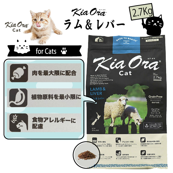 キアオラ/Kia Ora [猫用] ラム&レバー900g グレインフリー キャットフード 総合栄養食 オールステージ 消化吸収 食物アレルギー 免疫力 皮膚の健康 抗酸化成分 自然放牧 ニュージーランド【賞味期限2026年6月30日】