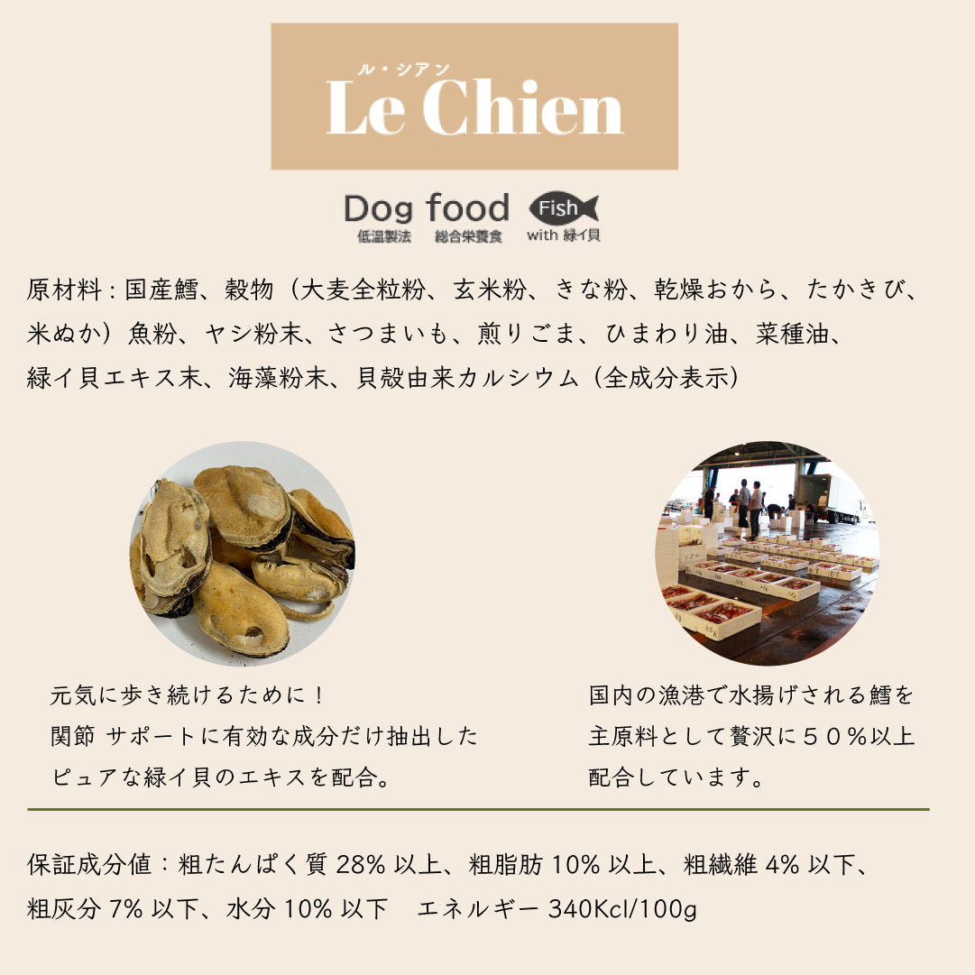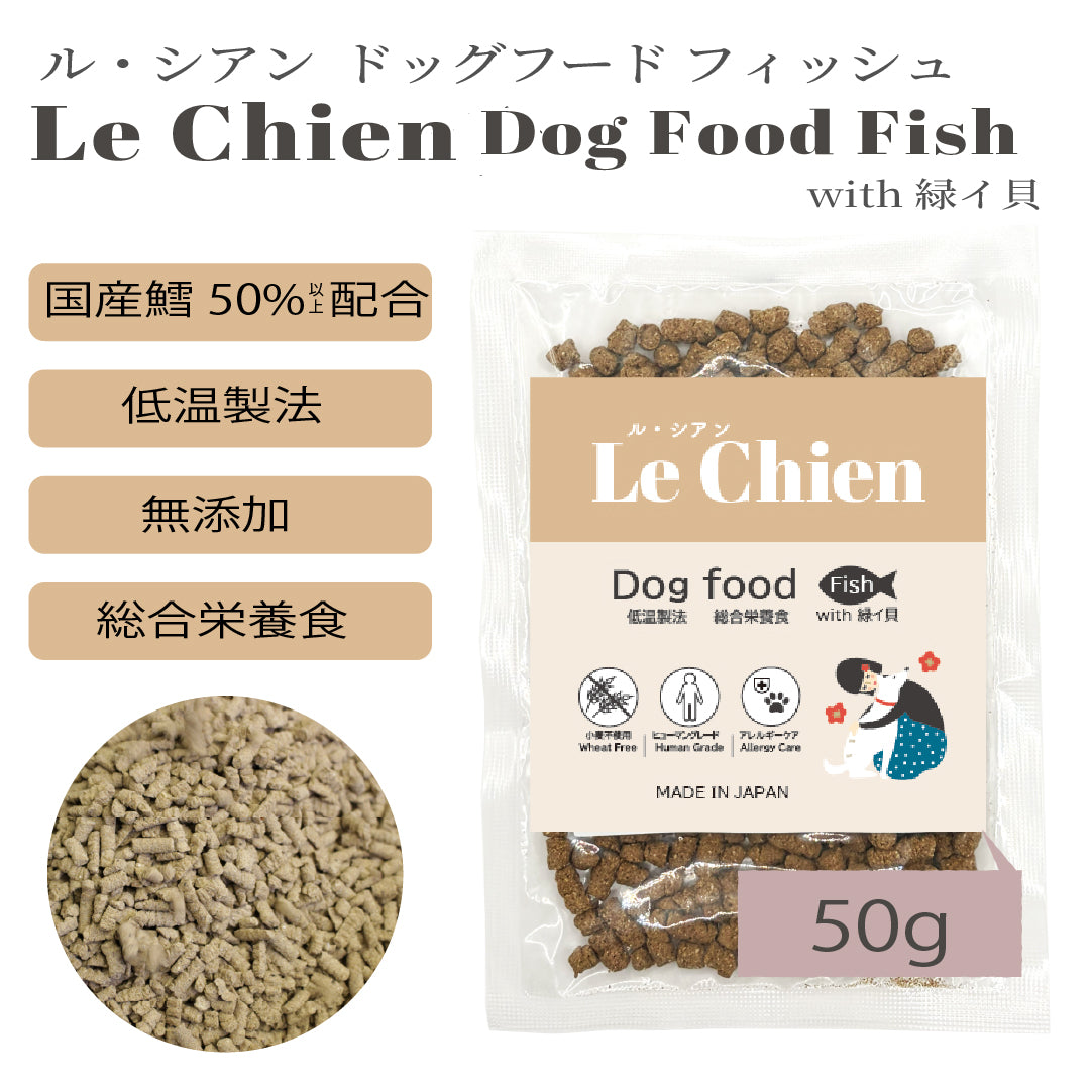 Le Chien/ ルシアン ドッグフード フィッシュwith緑イ貝 50g 国産鱈(タラ) 低温製法 総合栄養食 無添加 国産 消化にやさしい 吸収しやすい AGEs(終末糖化産物)生成抑制 嘔吐 胃捻転 肉アレルギー 緩やかな血糖変動 満腹感持続【賞味期限2026年10月27日】【ネコポス190円】
