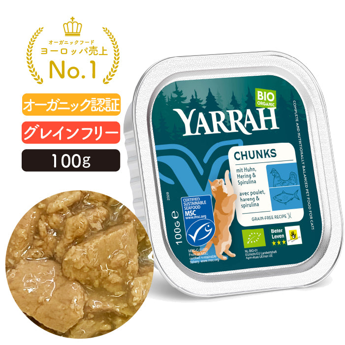 ヤラー チキンと魚のキャットチャンク100g Yarrah オーガニック キャットフード 総合栄養食 【賞味期限2026年7月9日】