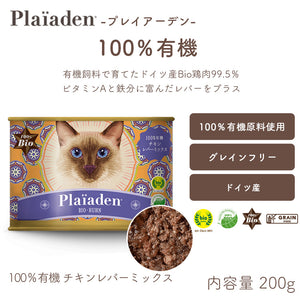 プレイアーデン 100%有機 チキンレバーミックス 200g キャット 猫 オーガニック ウエット 無添加 缶詰 水分補給 ヒューマングレード【賞味期限:2027年3月19日】